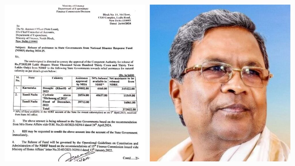 ಕೇಂದ್ರ ಸರ್ಕಾರದಿಂದ ರೂ. 3498.98 ಕೋಟಿ ಬರಪರಿಹಾರಕ್ಕೆ ಅನುಮೋದನೆ, ರೂ. 3,454 ಕೋಟಿ ಬಿಡುಗಡೆ
