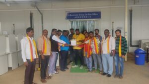 ದೊಡ್ಡಬಳ್ಳಾಪುರ ( ವಿಜಯಮಿತ್ರ) : ಕನ್ನಡಿಗರಿಗೆ ಉದ್ಯೋಗದ ವಿಷಯಗಳನ್ನು ಆಧರಿಸಿ ಫಾಕ್ಸ್ಕಾನ್ ಕೈಗಾರಿಕೆ ಸಂಸ್ಥೆಯಲ್ಲಿ ಶೇಕಡ 80 %ರಷ್ಟು ಉದ್ಯೋಗಗಳನ್ನು ಸ್ಥಳಿಯ ಕನ್ನಡಿಗರಿಗೆ ಮೀಸಲಿಟ್ಟು, ಈ ನೆಲ ಜಲ ಭಾಷೆ ಹಾಗೂ ಸಂಸ್ಕೃತಿಯನ್ನು ಗೌರವಿಸುವಂತೆ ತಿಳಿಸಲಾಗಿದೆ ಹಾಗೂ ಈ ಕುರಿತು ಕಾರ್ಖಾನೆಗೆ ಮನವಿ ಸಲ್ಲಿಸಲಾಯಿತು ಎಂದು ರಾಜ್ಯ ವಿಜಯ ಕರ್ನಾಟಕ ರಕ್ಷಣಾ ವೇದಿಕೆಯ ಸಂಸ್ಥಾಪಕ ಅಧ್ಯಕ್ಷ ಎ. ನಂಜಪ್ಪ ತಿಳಿಸಿದರು.