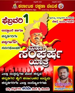 ಪ್ರವಾಸಿ ಮಂದಿರದಲ್ಲಿ ಮಾಧ್ಯಮದೊಂದಿಗೆ ಮಾತನಾಡಿದ ಅವರು, ಕರ್ನಾಟದ ರಾಜ್ಯದಲ್ಲಿ ಮಾರಾಟವಾಗುವ ಉತ್ಪನ್ನಗಳ ಎಜೆನ್ಸಿಗಳು ಕನ್ನಡಿಗರಿಗೆ ಸಿಗಬೇಕು, ಎಲ್ಲ ಉತ್ಪನ್ನಗಳ ಮೇಲೆ ಶೇಕಡಾ 60 ರಷ್ಟು ಕನ್ನಡ ಬರಹ ಇರಬೇಕು, ರಾಜ್ಯದಲ್ಲಿರುವ ಹಣಕಾಸು ಸಂಸ್ಥೆಗಳಲ್ಲಿ ಸಿ ಮತ್ತು ಡಿ ದರ್ಜೆ ಹುದ್ದೆಗಳು ಕನ್ನಡಿಗರಿಗೆ ಮಾತ್ರ ಸಿಗಬೇಕು ಎಂಬ ಮೂರು ಹಕ್ಕೊತ್ತಾಯಗಳನ್ನ ಸರ್ಕಾರದ ಮುಂದಿಡುತ್ತಿದ್ದೇವೇ, ನಾರಾಯಣಗೌಡರವರ ನೇತೃತ್ವದಲ್ಲಿ ಫೆಬ್ರವರಿ 1 ರಂದು ಫ್ರೀಡಂ ಪಾರ್ಕ್ ಮಹಾ ಸಂಘರ್ಷ ಯಾತ್ರೆ ಮಾಡುವ ಮೂಲಕ ಸರ್ಕಾರಕ್ಕೆ ಎಚ್ಚರಿಕೆಯನ್ನ ನೀಡಲಾಗುವುದು ಎಂದರು