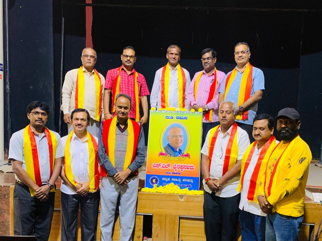 ಕನ್ನಡ ಸಾಹಿತ್ಯ ಪರಿಷತ್ತು ಕಸಬಾ ಹೋಬಳಿ ಕೋಶಾಧ್ಯಕ್ಷ ಜಿ.ಸುರೇಶ್ ಮಾತನಾಡಿ, ಎಸ್.ಎಲ್.ಭೈರಪ್ಪ ಅವರ ಸಾಹಿತ್ಯ ಸಾಧನೆಯನ್ನು ಪುರಸ್ಕರಿಸಿ ಪದ್ಮಶ್ರೀ ಪ್ರಶಸ್ತಿ, ‘ಸರಸ್ವತಿ ಸನ್ಮಾನ್ ಮುಂತಾದ ಹಲವಾರು ಪ್ರತಿಷ್ಠಿತ ಪ್ರಶಸ್ತಿಗಳು ಸಂದಿವೆ. ಎಸ್.ಎಲ್. ಭೈರಪ್ಪನವರು ಚಿಂತನಶೀಲತೆ ಮತ್ತು ಅನನ್ಯ ಅಧ್ಯಯನಶೀಲತೆ ಯುವ ಮತ್ತು ಉದಯೋನ್ಮುಖ ಬರಹಗಾರರಿಗೆ ಸದಾ ದಾರಿದೀಪವಾಗಿರುತ್ತದೆ ಎಂದರು.