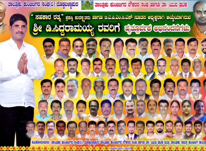 ದೊಡ್ಡಬಳ್ಳಾಪುರ: ತಾಲ್ಲೂಕು ವ್ಯವಸಾಯೋತ್ಪನ್ನ ಮಾರಾಟ ಸಹಕಾರ ಸಂಘದ (TAPMCS) ನೂತನ ಅಧ್ಯಕ್ಷರಾಗಿ ಆಯ್ಕೆಯಾಗಿರುವ ಕಾಂಗ್ರೆಸ್ ಬೆಂಬಲಿತ ಅಭ್ಯರ್ಥಿ ಡಿ.ಸಿದ್ದರಾಮಯ್ಯ ರವರಿಗೆ ತಾಲ್ಲೂಕು ಕುಂಚಿಟಿಗರ...